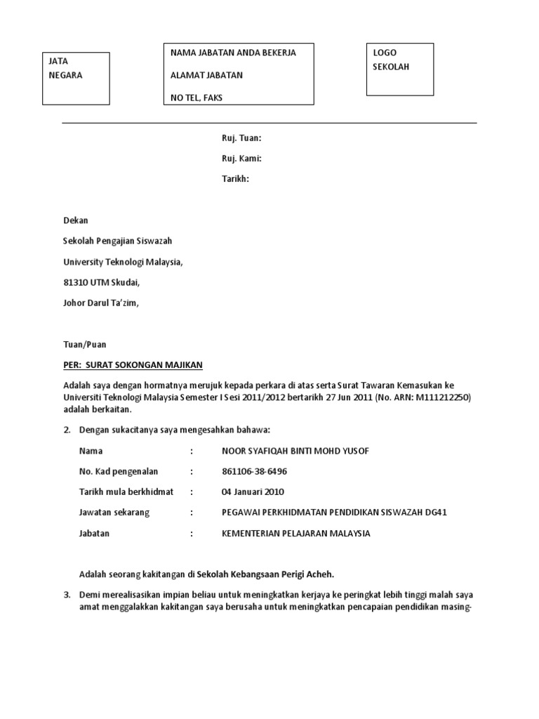 Contoh Surat Rasmi Memohon Pelepasan Kerja Otosection